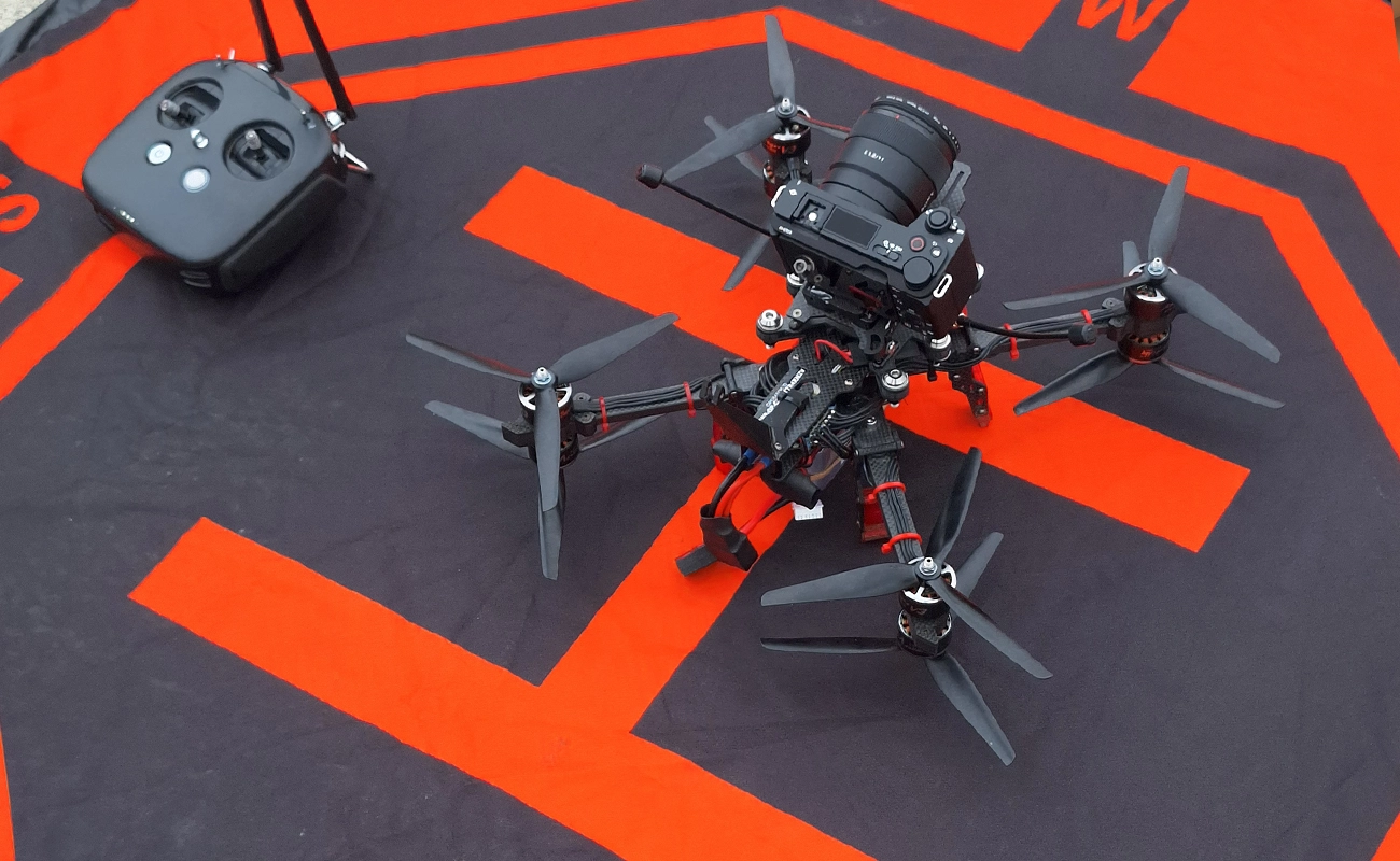 FPV drone pilots specialise in capturing footage from a first-person perspective using FPV goggles that provide a live camera feed from the drone. Aeroflair operates with three systems, a compact Cinewhoop for indoor flights, a 5-inch racing quad for high-speed, dynamic shots and a custom built cinelifter paired to a Sony ZV-E10 for film work